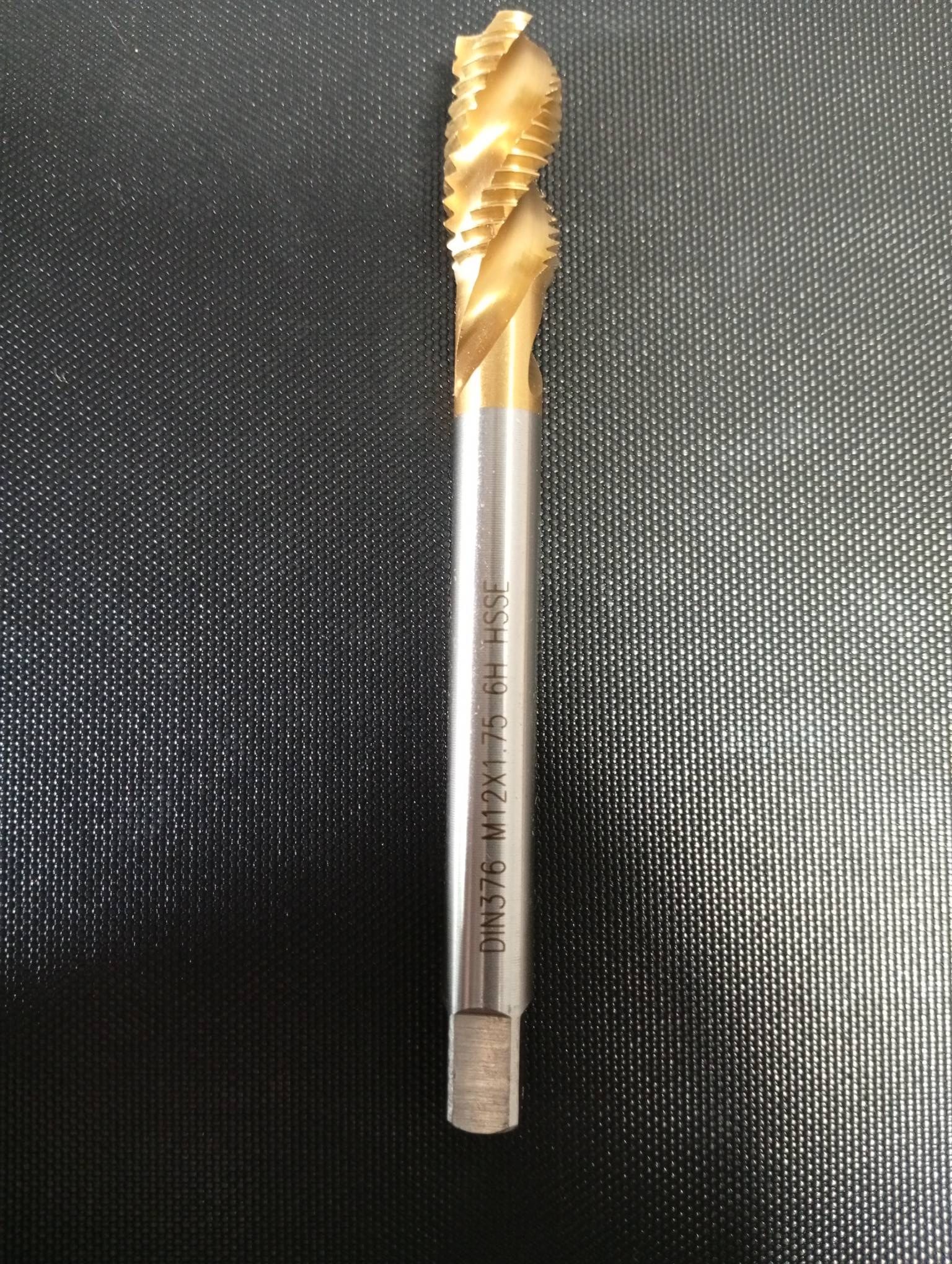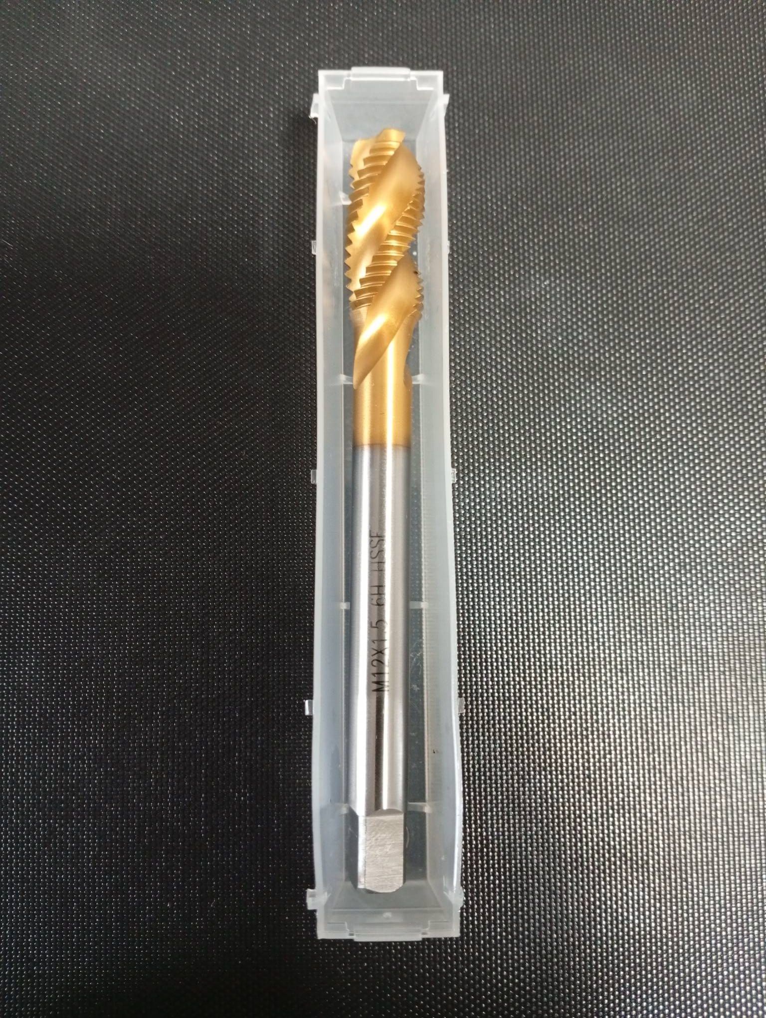 Метчик машинно-ручной М12х1.0 DIN 376 HSSE для глухих отверстий с винтовой канавкой с покрытием TiN