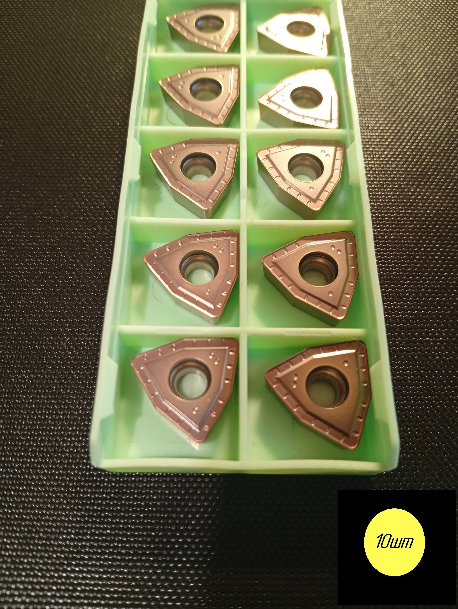 Твердосплавная сменная пластина WCMT для точения по металлу тригональной формы.Пластина со стружколомом, с отверстием под винт (40-60°).Задний угол 7° (позитивная). Допуск: m: ±0.08-±0.18. D1: ±0.05-±0.15. S1: ±0.13.