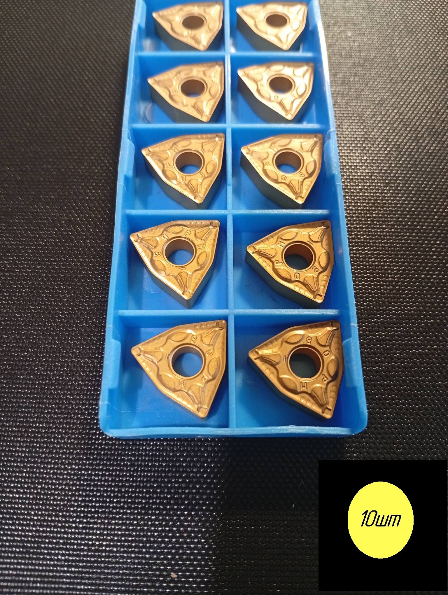 Твердосплавная сменная пластина WNMG для точения по металлу тригональной формы.Пластина двусторонняя со стружколомом, с отверстием.Задний угол 0° (негативная) Допуск: m: ±0.08-±0.18. D1: ±0.05-±0.15. S1: ±0.13.